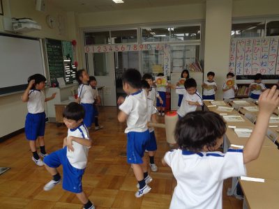 本文の内容や挿絵、お友達の動きを参考して動いています。