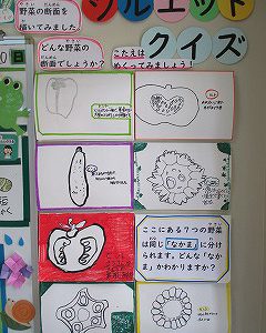 「やさいのおなか」という絵本をもとに、野菜の断面の写真を見ながら絵を描いて作りました。