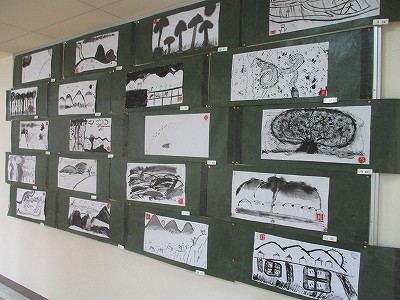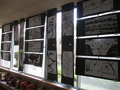 墨の濃淡、線の強弱を変え、それぞれ風景・生き物を表現しました。
