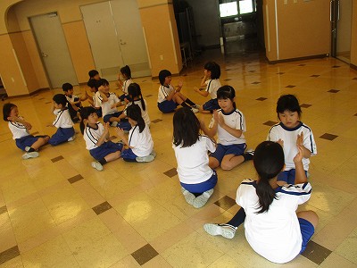 手の動かし方が分からない一年生もいますが、そこは知っている人とペアを組んで、見よう見まねで覚えていきます。