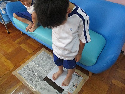 一人ひとり足形を取って、土踏まずが出来ているかを確認します。