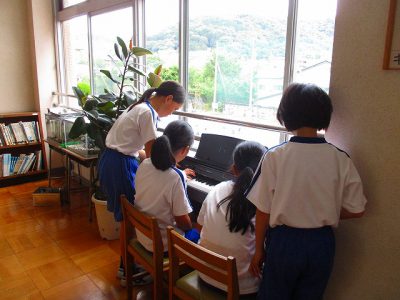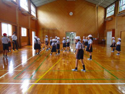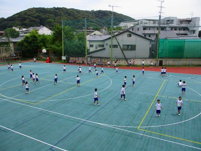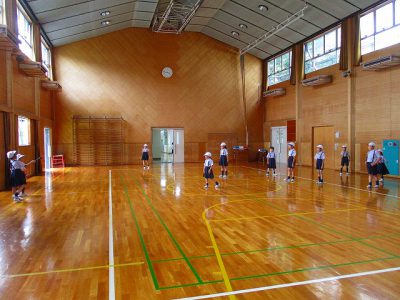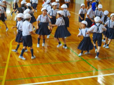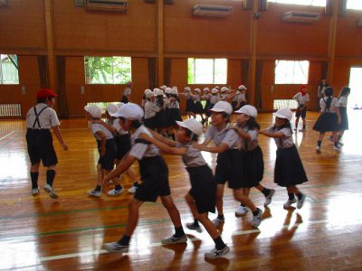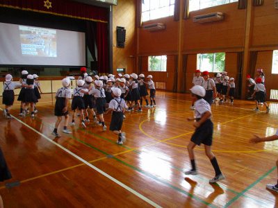 ゲームでは、「・・・さん、動いたよ。後ろに戻って!」と英語で言うのですが、異学年で相手の名前が分からない時に、英語でしっかりと名前を尋ねたり、応えたりできました。ほほえましく見せてもらいました!