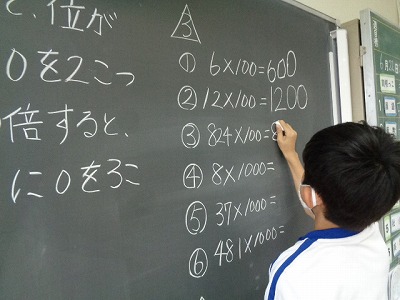 どんな数でも100倍すると、位が2つ上がり、右端に0を2こつけた数になることがよく分かりました。