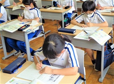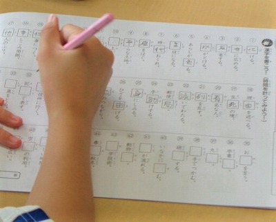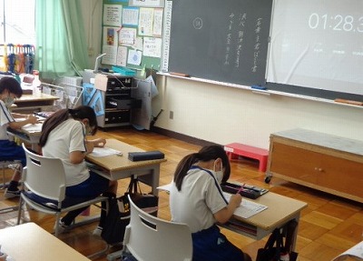 昼根っこタイムは「スイッチ・オン」という教材を使って、習った漢字50問の速記練習を行いました。「すばやく・美しく・正確に」を合言葉に、1分台のタイムで書き終わる児童もいました。