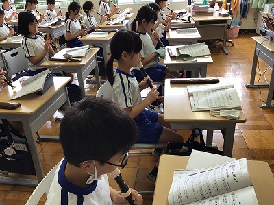 指番号0番の“穴の開き方”に慣れることが、気持ちのよい遠くへ通る高い音が出ます。先週の学習から、少し慣れてきた様子がうかがえます。