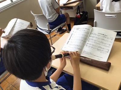 今日も、リコーダーの“サミング”を使った曲の練習に取り組みました。
