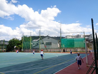 体育は、バレーのサーブの練習を続けています。体育館でペアで練習していると、相手まで届くまっすぐなナイスサーブが多くなりました。