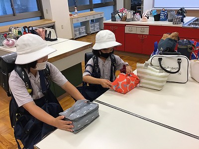 特に暑かった今日は、家庭科室に入った瞬間「涼しい~」と、ちょっと一息ついて、各教室に向かっていく姿がありました。