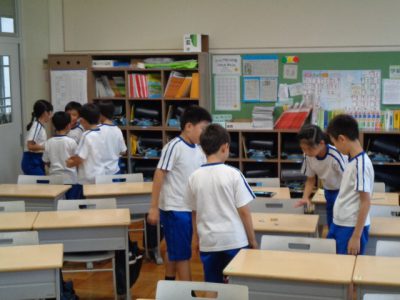 休み時間も室内遊びをいろいろ考え出して、男女混じって遊びます。教室には、「きゃあ!」という歓声や笑い声が響き、お天気の鬱陶しさを吹き飛ばしていました。