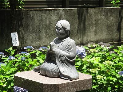 日差しのまぶしい朝を迎えました。あじさいロードの勢至丸さまも、まぶしく輝いています。暑さが気になるところです。