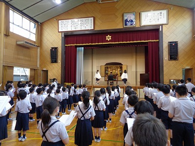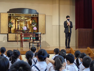 講堂で、仏教聖歌とお十念をお称えしました。