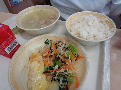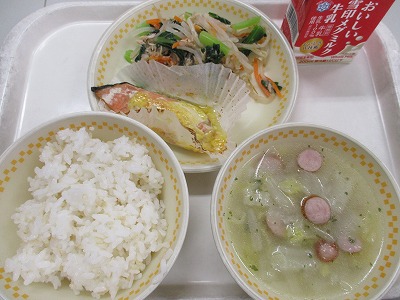 【給食「鮭のカレーマヨ焼き」他】