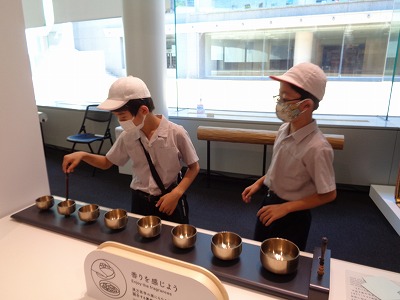 こちらは京仏具のおリン体験コーナー。ドレミファ..の音階を楽しみました。余韻ある美しい音色です。