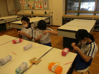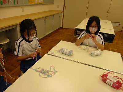 今日のクラブ活動は、かぎ針を使って「くさり編み」に挑戦しました。