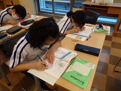 今日も学習室の習熟クラスは、拡大図と縮図の作図の学習です。