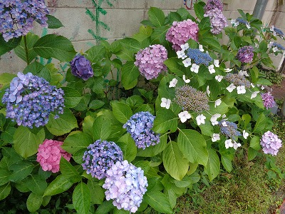 There are many different shapes and colors including, violet, pink and purple flowers.