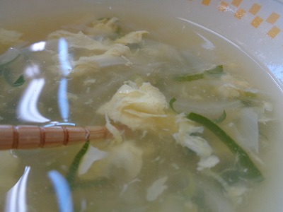 かきたま汁には、玉ねぎと葉ねぎが入っています。玉ねぎをよく煮込むと、あまみが引き立って出汁がよりおいしくなります。卵もふんわりするように、出汁をよくかき混ぜてから加えました。