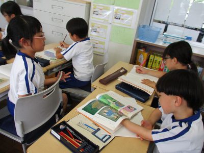 国語は、昔話「たのきゅう」の話を聞いて、面白かったところを