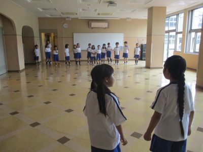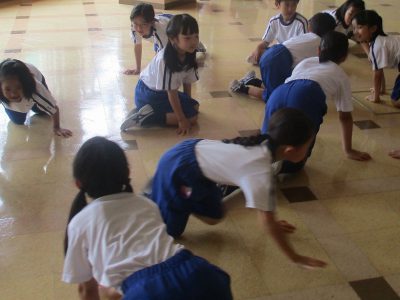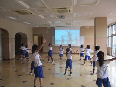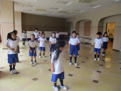 雨で運動場が使えない中、伸び伸びと体を動かせました!