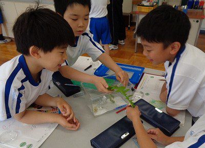 各チームで、幼虫も新しい葉っぱに引っこしさせました。