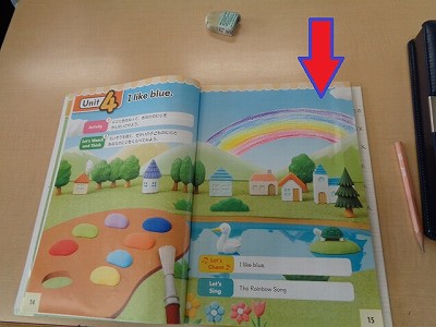 英語のテキストに、すてきな虹が!