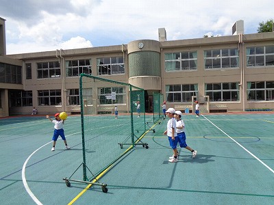 体育は、暑い午後の時間帯の学習ということで、日差しが強く、暑さに少し気持ちが負け気味な3年生でしたが、リレーや鉄棒の活動の中で、他の人の良いところ見つけをしたりしながら、最後は、はじめて運動場でバレーボールの練習をしました。