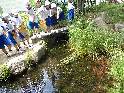生活科では、校庭(ビオトープ)のマップ作りへ向けて、草花・生き物を観察しました。