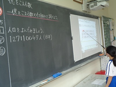 1時間目の算数は、わり算の筆算の学習を終えて「一億をこえる数」という単元に入りました。今日は、日本の人口から中国・インドの人口と「億」をこえる数はどのようにして数えればよいのかについて考えます。