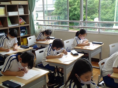 昼根っこタイムは、週に2回取り組んでいる「あまりのあるわり算の計算50問」をタイムをはかってチャレンジしました。これまで取り組んできた算数の「わり算の筆算」の単元学習でも、わり算のスピードが問われます。だんだん計算のコツをつかんできた人もいるようで、みるみるうちにタイムが速くなっていきます。