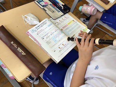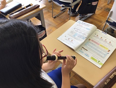 いろいろなパターンをつくりだそうというところで、時間がきてしまいました。3種類の音型の友達に、リレーのようにリコーダーで演奏してもらうと・・・