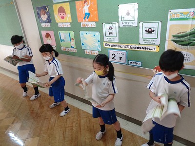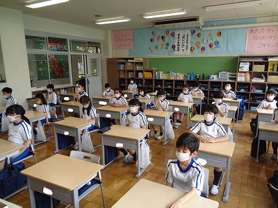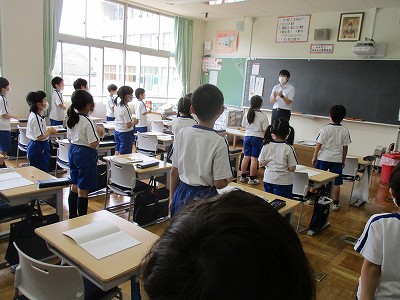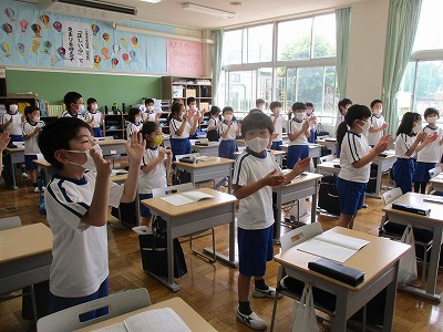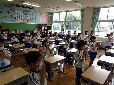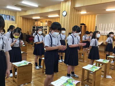 朝の会では、10秒間の黙想を行い、心身を落ち着かせています。