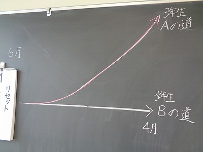 1年間の目標を考えると共に、2年生が目指す成長曲線についてクラスで共有しました。