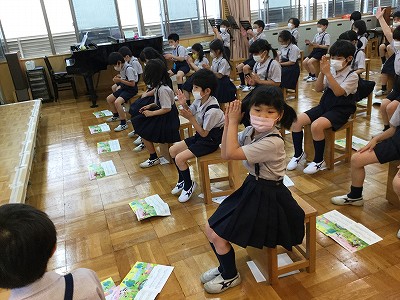 しめくくりは、やっぱり“♪小さなはたけ”。低い音でゆっくり…の「3番大きなたね」は、2年キッズの“おはこ(十八番)”になっているようです。いろんな“花”が咲いています。