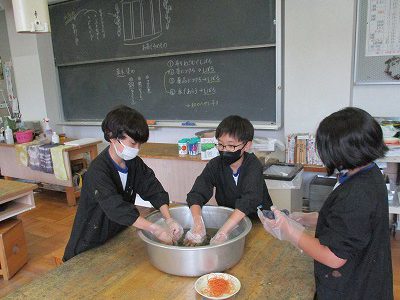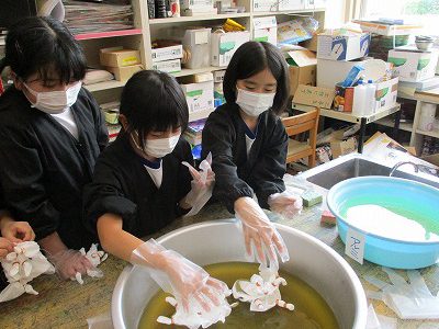 【図画工作「緑茶染め」】