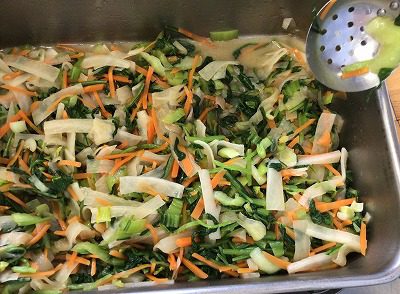 ☆ シャキシャキと濃い緑が鮮やかな壬生菜の入ったサラダです。