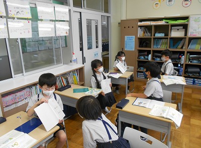 その後、ペアで絵を見せ合い、「考えたわけ」「はたらき」「形・色・大きさ」などをお互いに説明しました。
