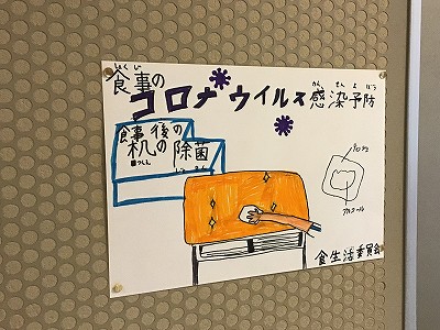 食べ終わった後は、机もしっかり消毒して清潔にします。