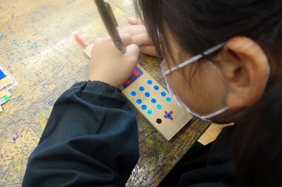 「カラフルなのもいいけど,決まった色でつくると落ち着いた感じになる。」など,友達の作品を見て自分の見方や感じ方を広げることができました。