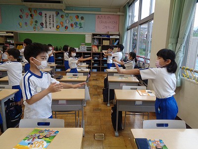 触れ合う英語コミュニケーション活動はできませんが、ノータッチングでも、このように心と心が通じることができます。