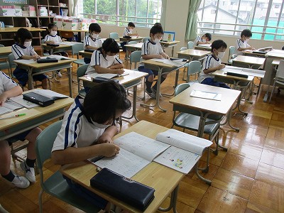 ノートに書く時はていねいに定規を使って書きます。みんな集中してノートに書いて、練習問題に取り組みました。