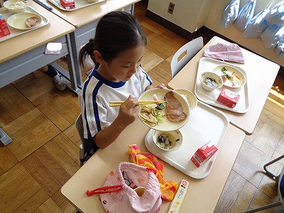 給食の時間を、まだかまだかと待ちわびている2年キッズ。