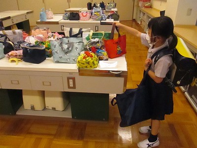 2日目の朝は、家庭科室に入る前にカバンからお弁当を出して、すぐ置けるように準備している姿が見られました。