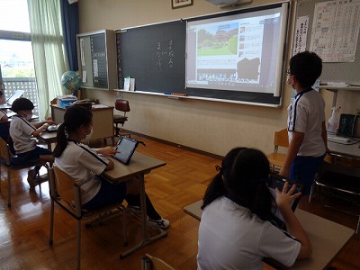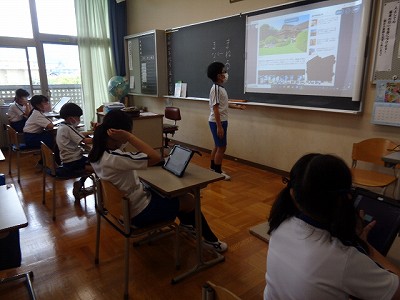 前時にロイロスクールで調べた「岡山県のいいところ」の発表をしました。