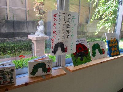 英語週間は終わりましたが、「アジア子ども絵日記展」と併設して、エリック・カールさんの英語絵本を造形室前に展示しています。