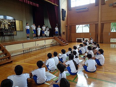 さて、通し練習開始です!当たり前ですが、やはり、発表会場となる体育館は広い。教室練習時と同じ発声では、声が小さく感じられます。