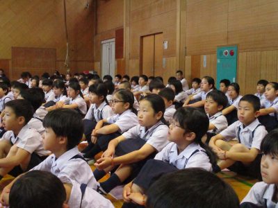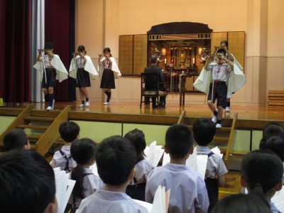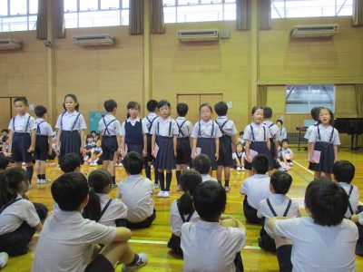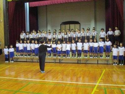 教頭先生の指揮に合わせて、伸び伸びと歌っていました。