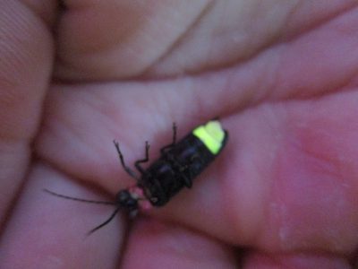 先週、白川でホタルを見つけた英語クラブのメンバー達。