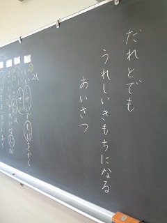 今日は、学習の目標について話し合い、たくさんの意見が出されました。「話をよく聞く」「よい姿勢」「です・ますの丁寧な言葉遣い」などたくさんの意見が出ましたが、最終的に「毎日文字をきれいに書く」に決まりました。