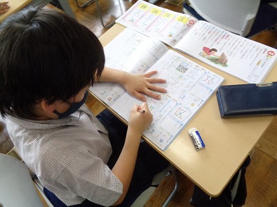 「着」の漢字間違いや「落とす」の送り仮名ミスが多かったです。くり返し練習を重ねましょう。 新出漢字は「区」と「陽」の2文字です。