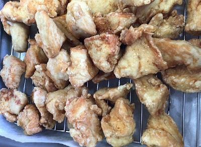 ☆ とりの唐揚げは鶏肉に少し塩をふって下味をつけ、片栗粉をはたいて揚げました。